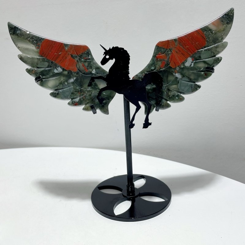 We sell our pegasus wings with stand in lots that are 4 pairs,you will get the same of stones as in the photo and video.