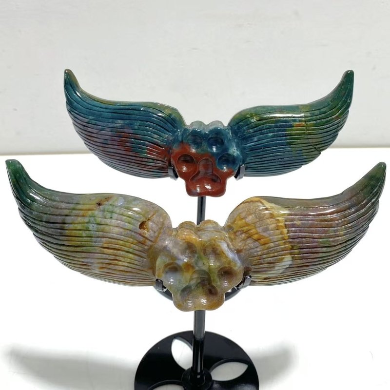 6 Pairs Unique Ocean Jasper Cat Paw Wing Carving With Stand | Australia