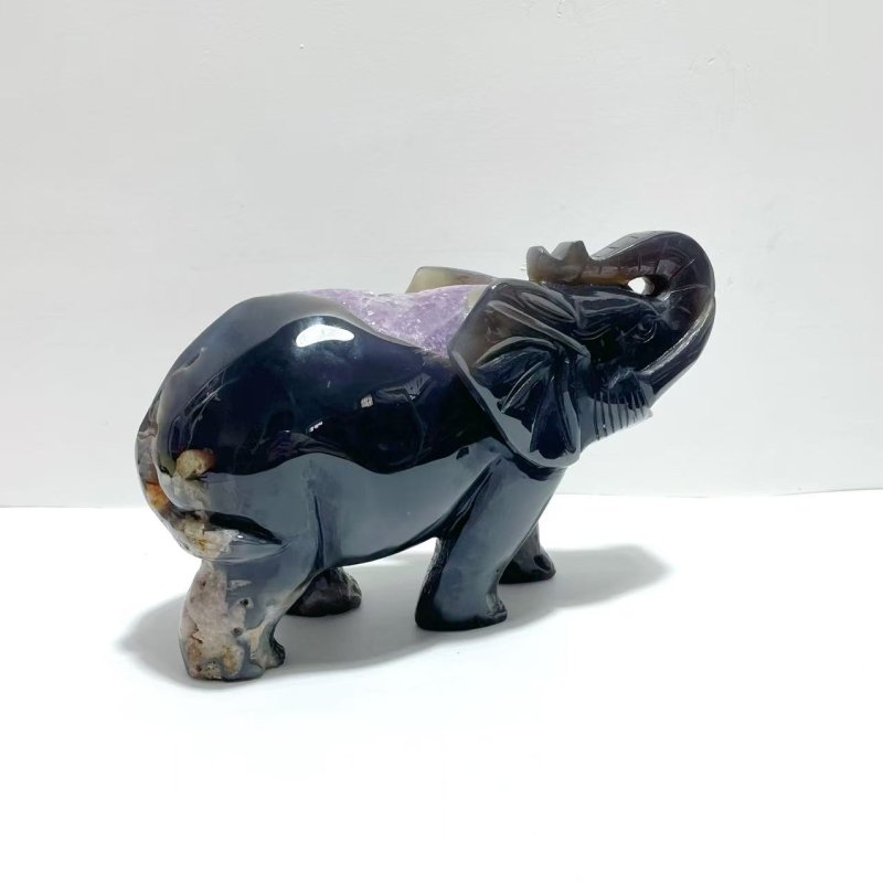 Unique Amethyst Mixed Geode Druzy Agate Elephant Animal Carving #A11