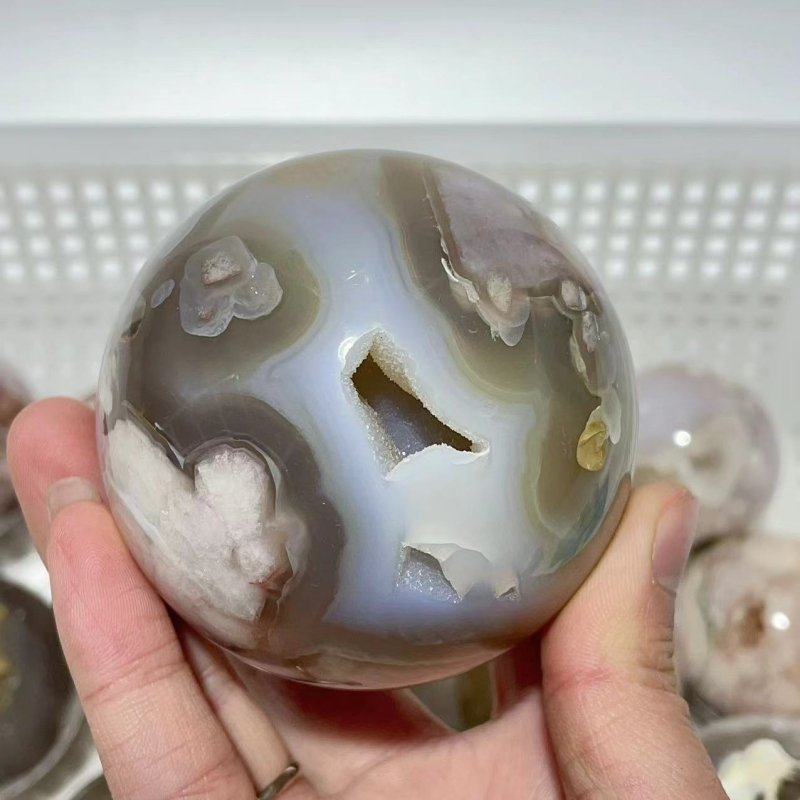 We sell our sakura agate geode sphere in lots that are 13pcs, you will get the same of stones as in the photo and video.