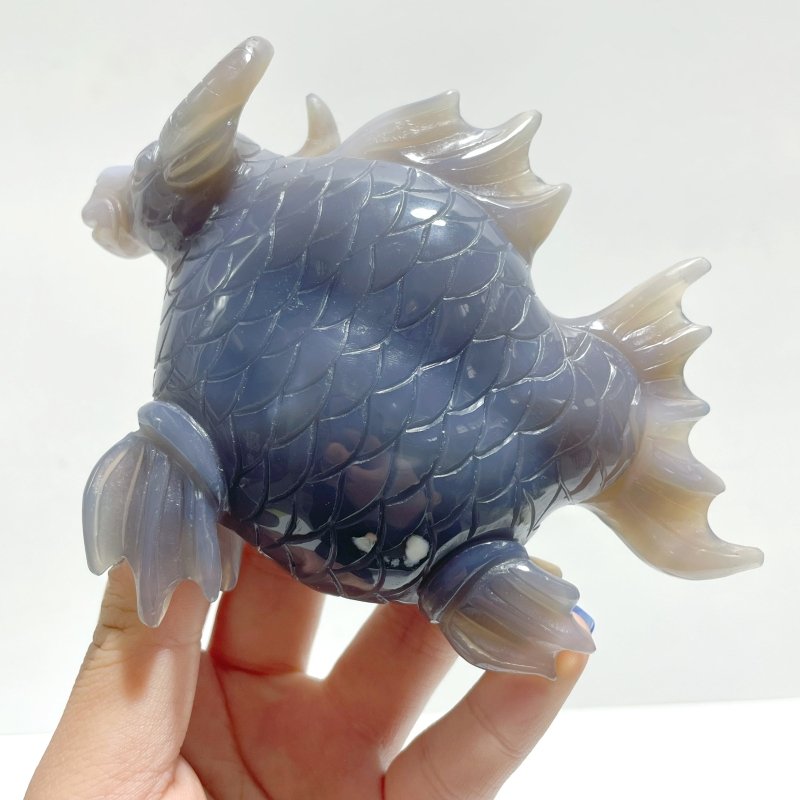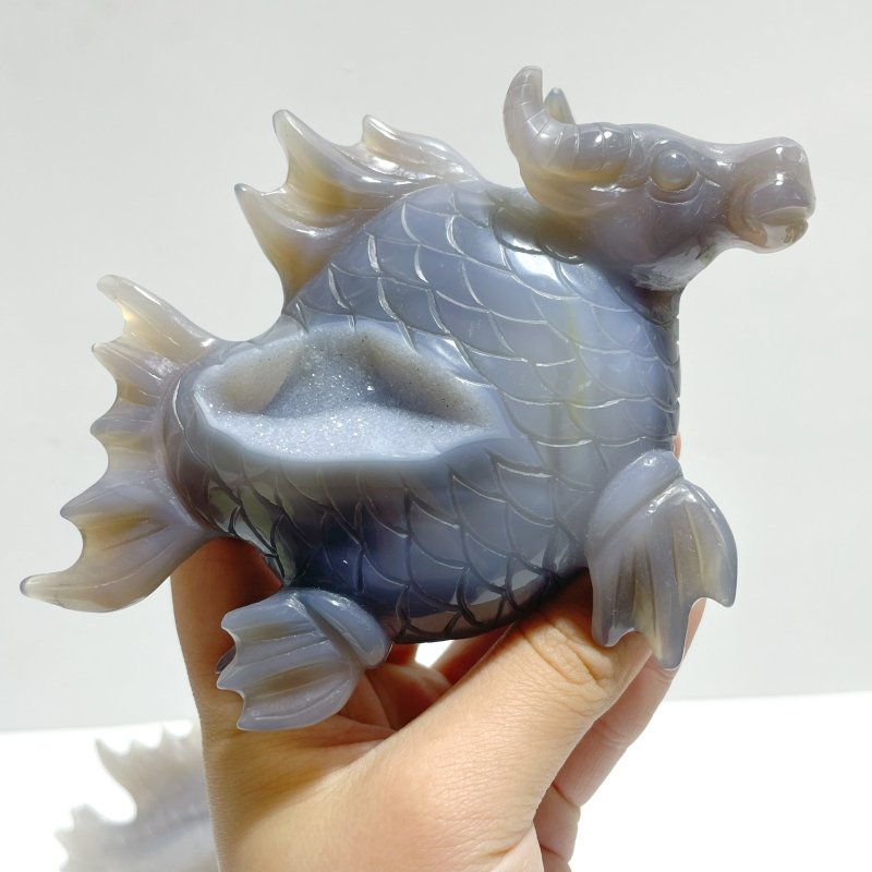 4 Pieces Geode Druzy Agate Fish with Pig&Calf Head Carving | Australia