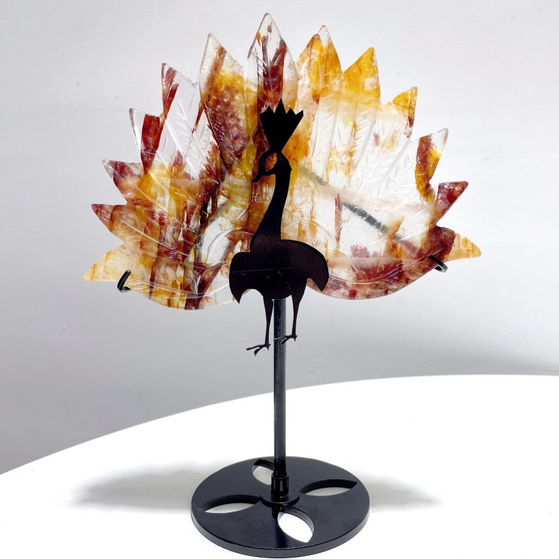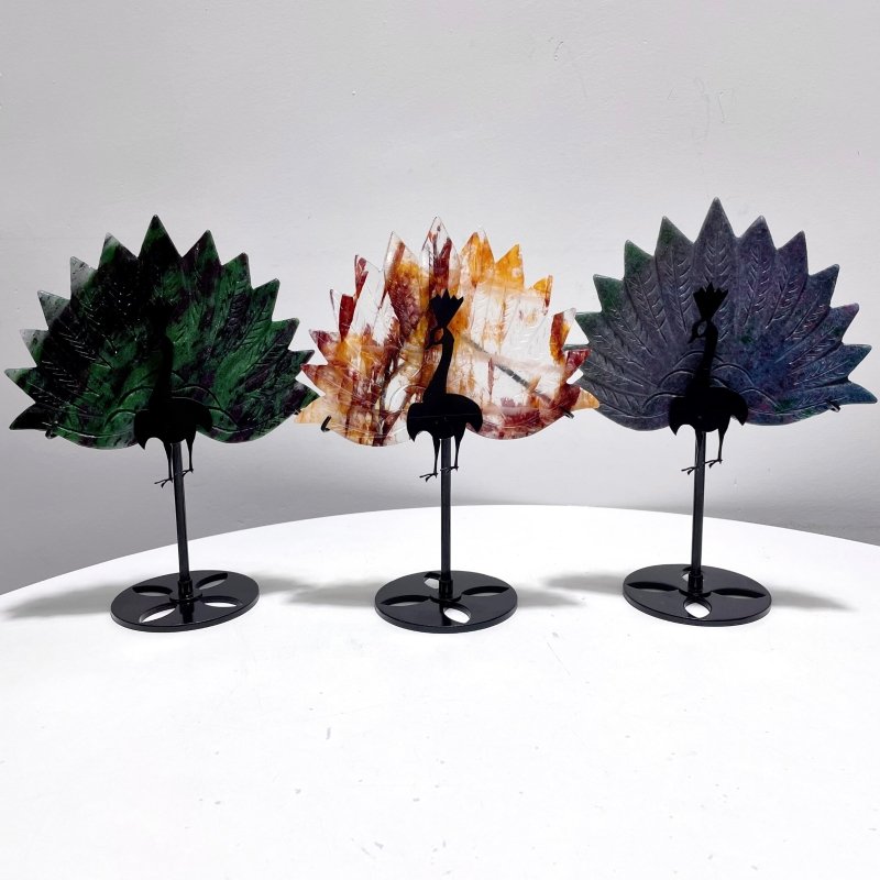 We sell our peacock wing carving in lots that are 3pcs, you will get the same of stones as in the photo and video.