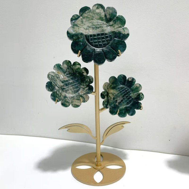 3 Pairs Beautiful Flower Carving With Stand Moss Agate Pink Opal Fluorite | Australia