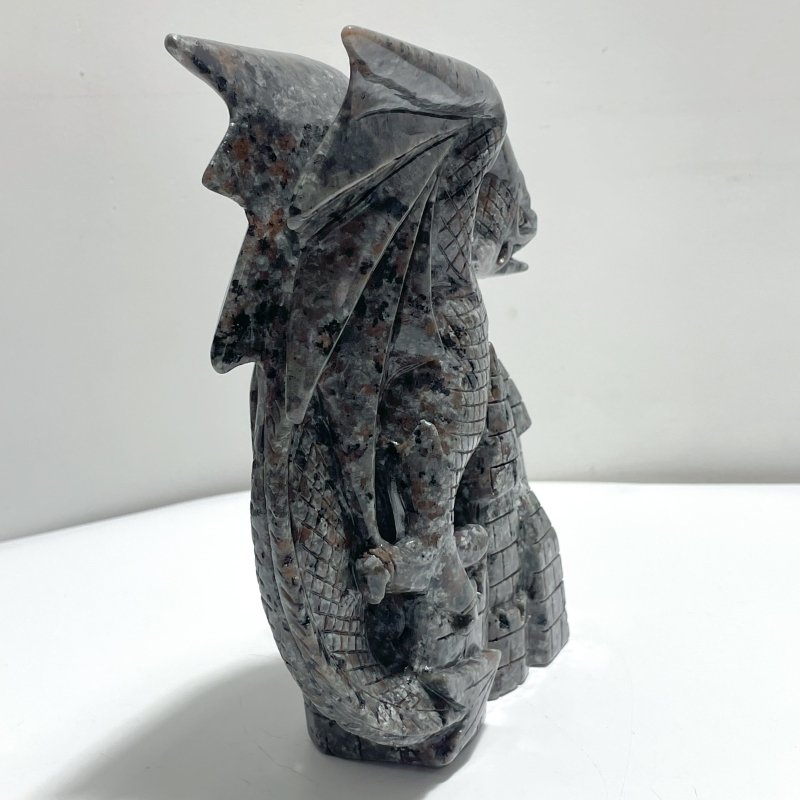 9.4in Unique Yooperlite Flying Dragon With Castle Carving (UV-Reactive) | Australia
