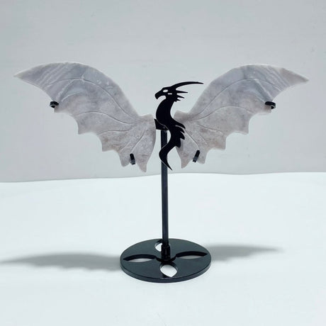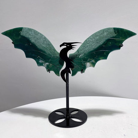 2 Pairs Flying Dragon Wing With Stand Moroccan Agate Moss Agate