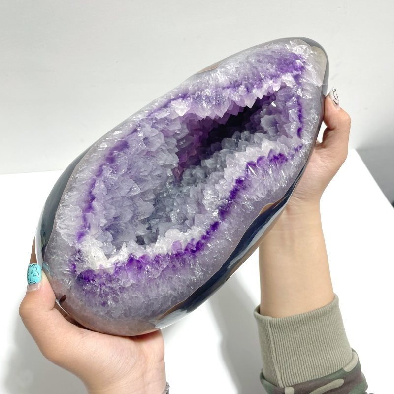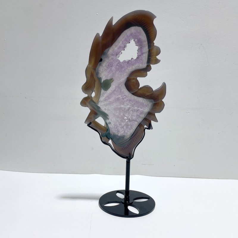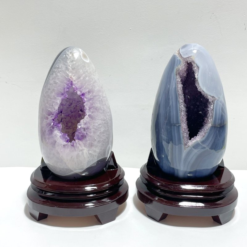 Unique Amethyst Mixed Geode Agate Calcite Dinosaur Egg Home Decor With Stand