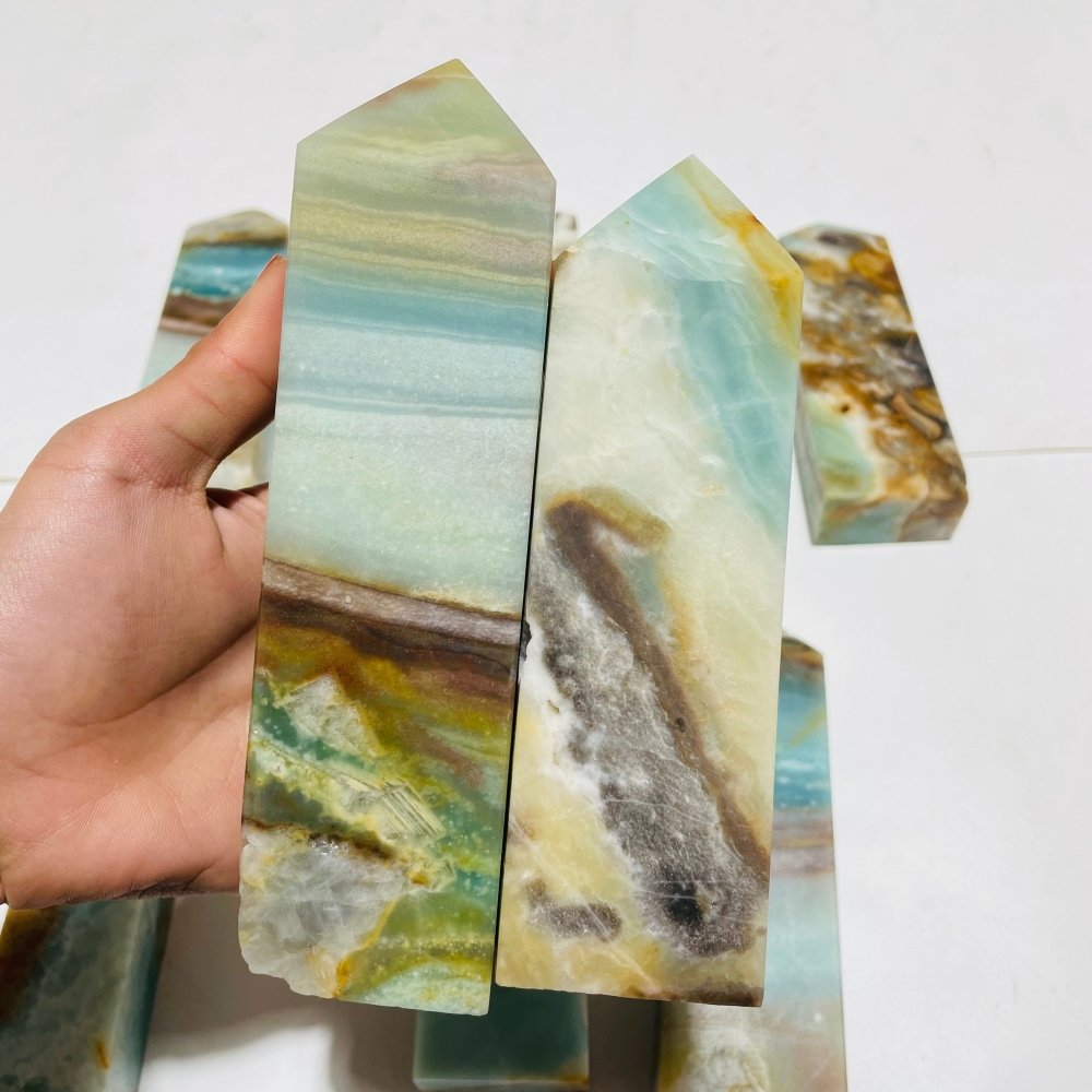 We sell our caribbean four-sided tower in lots that are 10pcs,you will get the same of stones as in the photo and video.