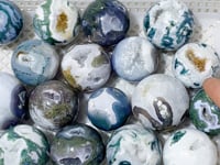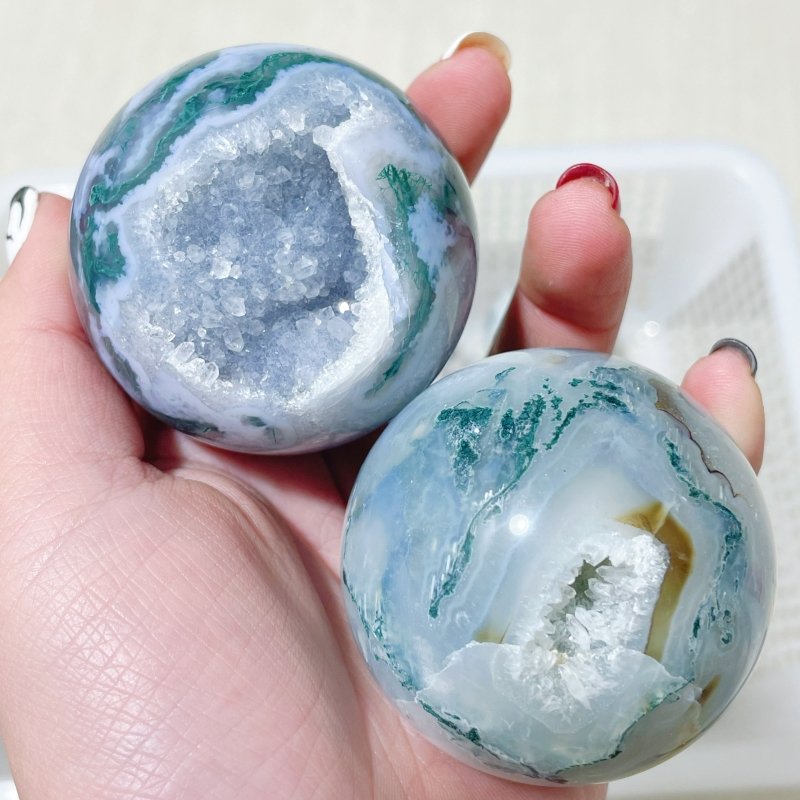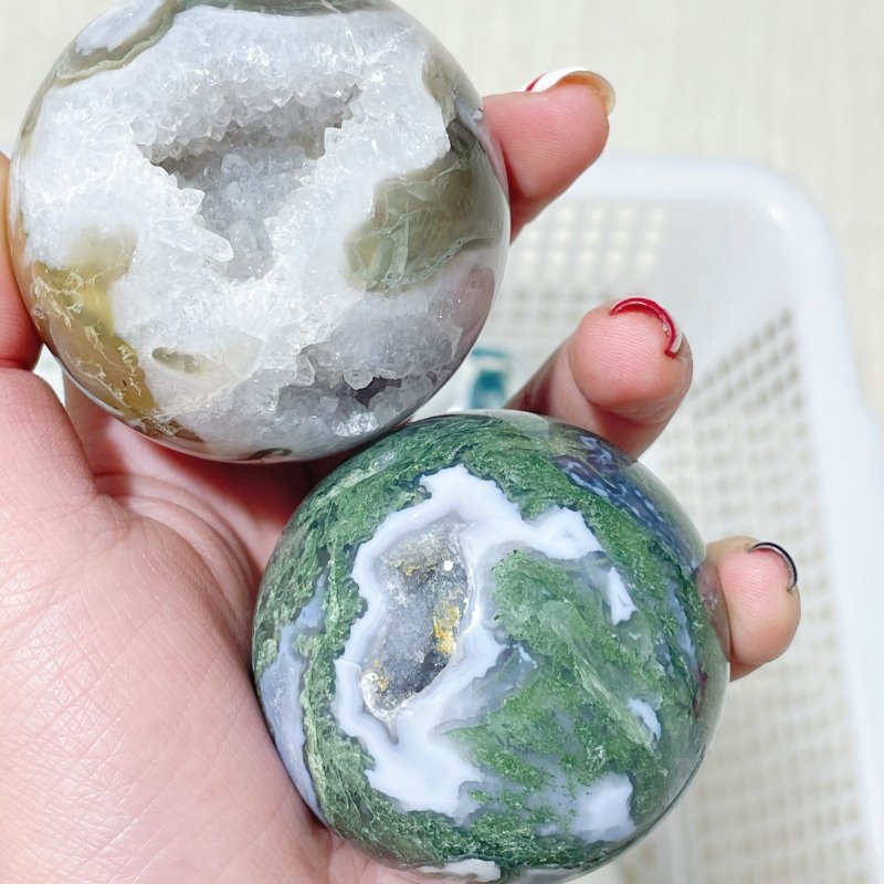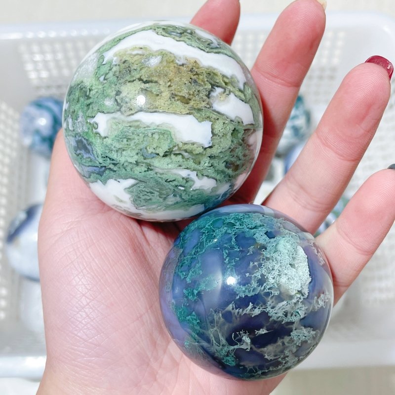 We sell our moss agate spheres in lots that are 13pcs, you will get the same of stones as in the photo and video.