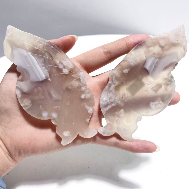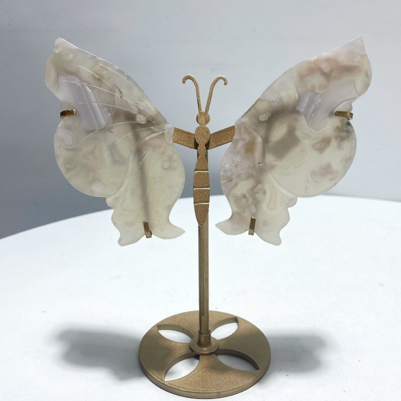 4 Pairs Butterfly Wing Carving With Stand Green Aventurine Flower Agate Moss Agate | Australia