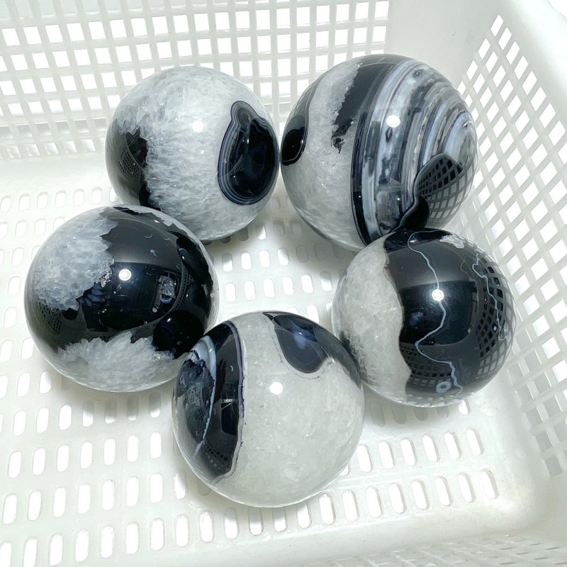 5 Pieces Large Black Agate Mixed Quartz Spheres | Australia