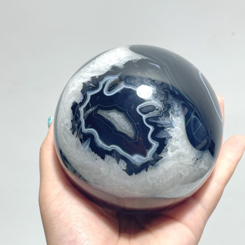 We sell our black agate mixed quartz spheres in lots that are 5pcs, you will get the same of stones as in the photo and video.