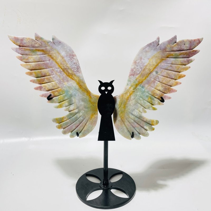 2 Pairs Ocean Jasper Symmetry Owl Wing Carving With Stand | Australia