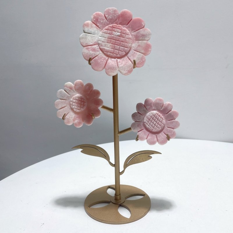 3 Pieces Sunflower Carving With Stand Pink Opal Fluorite Fire Quartz#1 | Australia