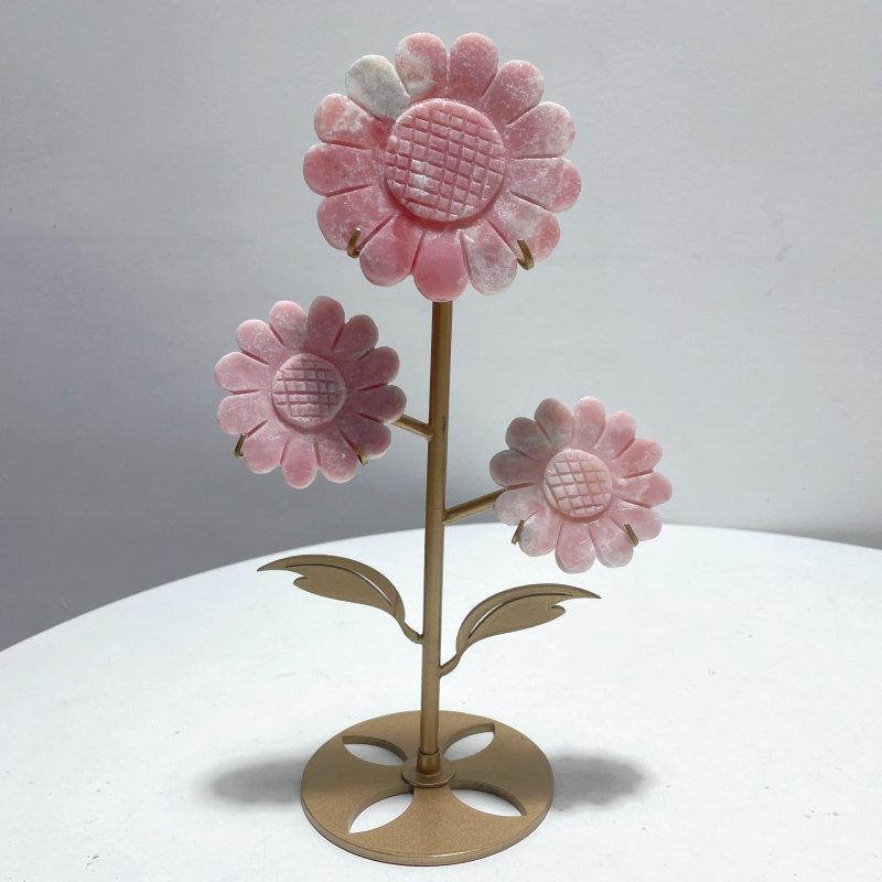 3 Pieces Unique Sunflower Carving With Stand Fire Quartz Fluorite Pink Opal#2 | Australia